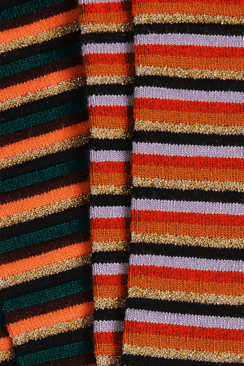 The King Louie Socks 2-Pack Vicky Stripe is perfect for both casual and formal occasions. The blend of soft bamboo and stretchy knit ensures a snug fit, while the eye-catching stripe patterns and lurex accents make these socks a trendy accessory. Whether you're dressing up for work or lounging at home, these socks are designed to enhance your comfort and style.