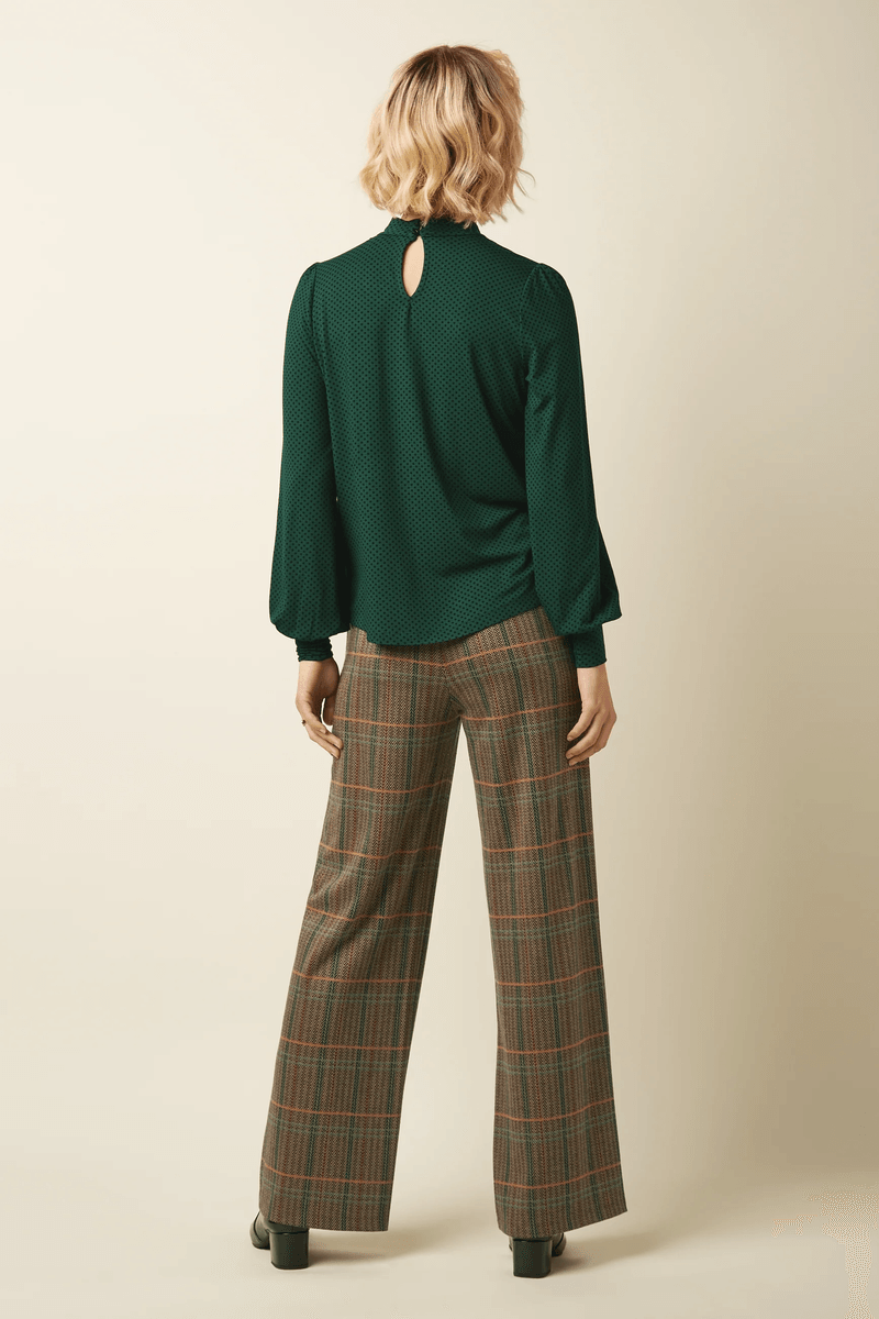 la blusa Piper Phoebe De King Louie Está Diseñada Para La Mujer Que Valora Tanto El Estilo Como La Comodidad. El Cuello Alto Con Pliegues Suaves Realza Tu Escote, Mientras Que La Viscosa Elástica Asegura Un Ajuste Favorecedor Que Se Mueve Contigo. El Encantador Estampado De Lunares Añade Un Toque Caprichoso, Perfecto Para Salidas Casuales O Ocasiones Más Elegantes.