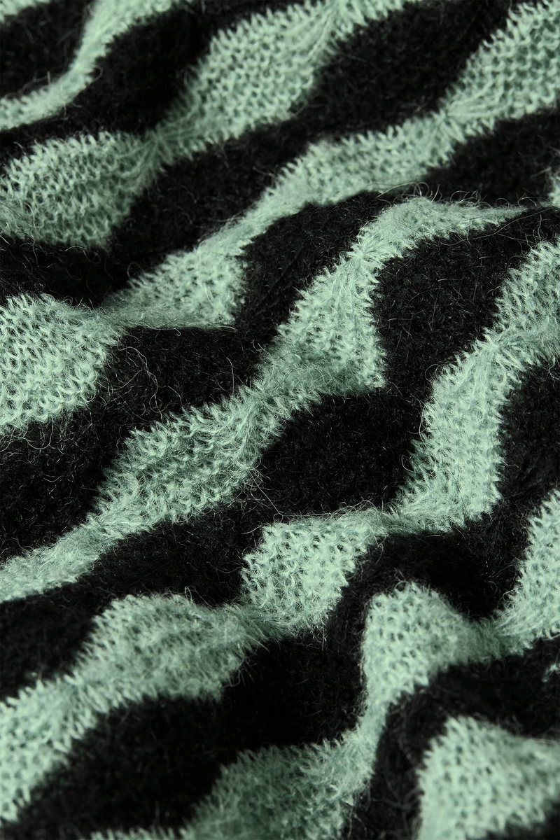 kuningas Louie Erin Bell Top Bodega On Disainitud Graatsilise Paadi Kaeluse Ja Pikkade Varrukatega, Mis On Lõpetatud Elegantsete Mansettidega, Tagades Rafineeritud Välimuse. Olenemata Sellest, Kas Riietud Väljaõhtuks Või Naudid Hubast Päeva Kodus, Pakub See Topp Vajalikku Mitmekesisust. Selle Ainulaadne Graafiline Muster Lisab Kunstilist Sära, Muutes Selle Silmapaistvaks Osaks Igas Kollektsioonis.